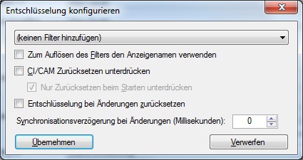 DVB.NET unterstützt grundsätzlich nur die Entschlüsselung unter Verwendung einer CI/CAM Hardware. Die aktuell vorhandenen Auswahlalternativen gelten für: