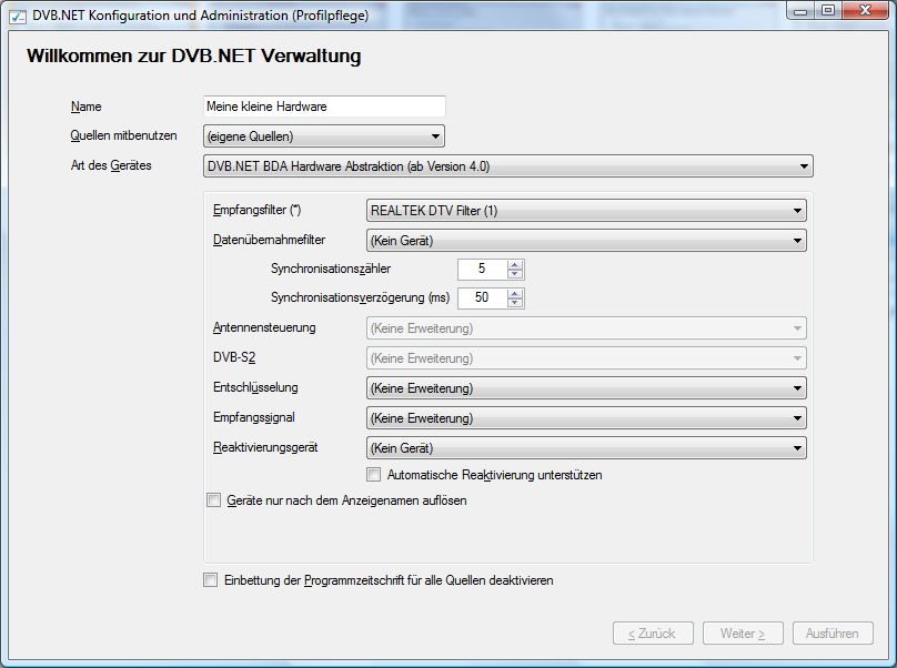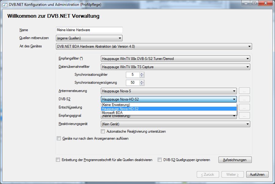Die Liste der Alternativen kann variieren, da sie sich automatisch aus den Bibliotheken zusammensetzt, die im Adapter Unterverzeichnis der DVB.NET Installation vorgefunden werden. Enthält sie weitere Einträge, so kann es sich um spezielle Erweiterungen handeln oder über solche, die erst nach Erstellen dieser Beschreibung in das Produkt aufgenommen wurden.