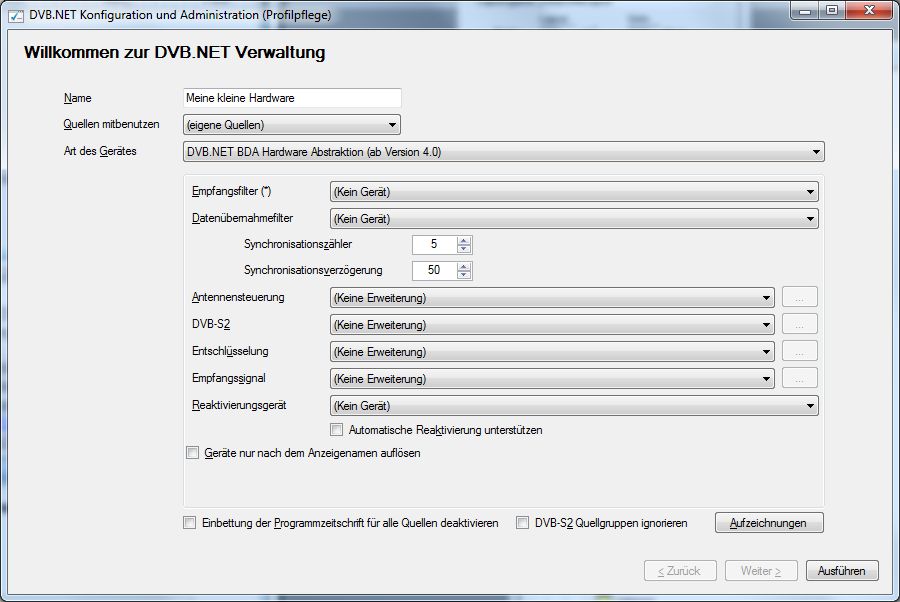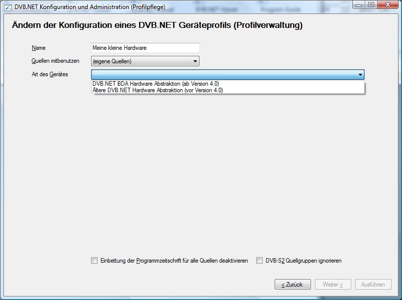 Oben kann für ein Geräteprofil festgelegt werden, dass auf diesem kein eigener Sendersuchlauf durchgeführt wird, sondern dass die Quellen eines anderen Profils mitbenutzt werden sollen - das ist natürlich nur für gleichartige Geräte möglich, also wenn etwa beide den digitalen Empfang über Satellit anbieten.