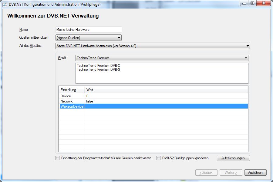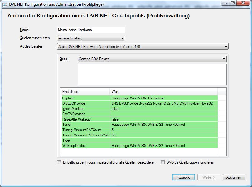 Es ist auch immer möglich, die Einbettung der elektronischen Programmzeitschrift für alle Quellen zu deaktivieren, die über das gerade bearbeitete Geräteprofil empfangen werden. Bei der TechnoTrend Premium Line hat es sich gezeigt, dass gerade beim HDTV Empfang durch diese Einbettung Störungen im aufgezeichneten Material entstehen - vermutlich bedingt durch die Vorverarbeitung der Programmzeitschrift in der Firmware der Karte. Zwar ist es möglich, diese Einbettung auch pro Quelle zu deaktivieren, allerdings ist es oft einfacher und sicherer, dies für die Hardware an sich vorzunehmen.