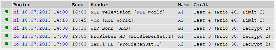 Da der Zeitplaner erst so richtig etwas zu tun bekommt, wenn er Aufzeichnungen auf relativ gleichartige Geräte verteilen kann, habe ich mir für die Beispiele folgendes Szenario überlegt - es ist nicht ganz realistisch, aber als Grundlage für das Verständnis der Abläufe ganz nützlich: