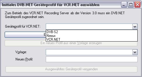 Soll ein bereits vorhandenes Geräteprofil genutzt werden, so kann es einfach über die obere Auswahlliste festgelegt werden. Das ist die empfohlene Art der Installation.