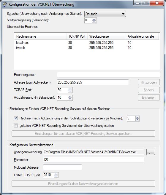 Die Überwachung kann auch auf einem anderen Rechner als dem VCR.NET Server installiert werden. Die Konfiguration erlaubt unter anderem die gleichzeitige Überwachung beliebig vieler VCR.NET Server. |