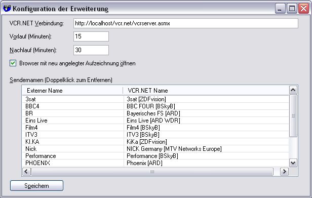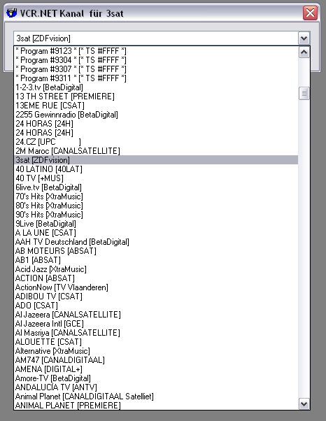 Die VCR.NET Unterstützung kennt nach der Erstinstallation erst nur exemplarische Zuordnungen von TVBrowser Sendernamen zu VCR.NET Sendernamen. Daher wird im Allgemeinen bei der ersten Aufzeichnung zu jedem Sender die Zuordnung erfragt - das ist lästig, geschieht aber halt nur einmalig pro Sender und die Auswahl bleibt auch für den ClickFinder erhalten. |