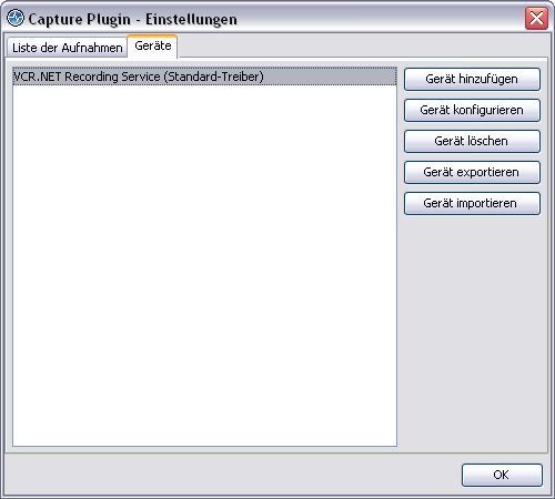 Im Unterverzeichnis Browser PlugIns des VCR.NET Installationsverzeichnisses befindet sich eine vordefinierte Konfiguration, die nun als Gerät importiert wird. |