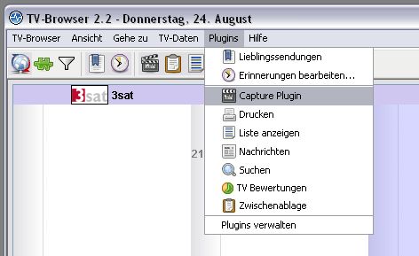 Im TVBrowser wird die Unterstützung von VCR.NET als so genanntes Capture PlugIn aktiviert. Darüber ist es nicht nur einfach möglich, Aufzeichnungen zu programmieren, sondern es können auch über den TVBrowser angelegte Aufzeichnungen wieder entfernt werden - sofern diese nicht im VCR.NET verändert wurden. Für die Aktivierung der VCR.NET Unterstützung wird zuerst einmal die Konfiguration im TVBrowser aktiviert. |