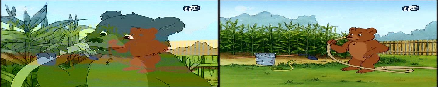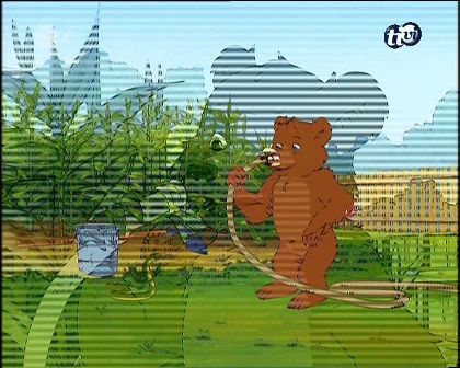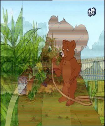 Bei genauem Hinsehen läßt sich lediglich eine schwache Überlagerung erkennen, aber der wesentliche Bildinhalt ist in Ordnung - interessanter Weise kann man diesen Effekt auch bei einigen der DVB-S Austrahlungen erkennen: hier wurde offenbar auch die Größe der Frames manipuliert.